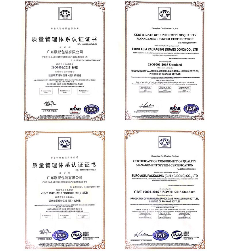 自成立以来,公司一贯推行严格的质量控制体系,始终坚持“以质为本,诚信服务,科学管理,持续改进”的质量方针,以用户为关注焦点,站在客户的角度为客户监控质量。自2002年起先后取得国内GB/T19001-2008标准质量管理体系认证证书,ISO9001:2000、9001:2008质量管理体系认证证书(ANAB),国家药材包装材料和容器注册证、出口危险货物包装容器质量许可证、全国工业产品生产许可证。2015年连续获得“广东省著名商标证书”, “中国包装优秀研发中心”称号, “中国包装优秀产业基地”称号,广东省采用国际标准产品认可证书,ISO9001-2015版新版证书;2016年获“高新技术产品”证书,“中包联科学技术奖二等奖”,“广东省轻工业协会进步奖”,“广东省守合同重信用企业”,“全国轻工业质量管理小组优秀企业”,“全国轻工业卓越绩效先进企业”,“中山市科技进步奖三等奖”;2017年获“高新技术企业证书”,“DOT认证证书”;多项技术和产品获得了国家专利。公司产品获得了诸多国内外知名品牌日化用品公司和医药用品公司包括:美国安利、宝洁、吉列、德国汉高、英国联合利华、法国CD、日本花王、云南白药、广州好迪、武汉丝宝、沈阳红药等,均为行业龙头企业。